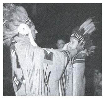 | If a sound control appears to the left, push the "play" button to hear Ballard tell about Buckett and the Hustler Totem as told in Oct. 2001 - otherwise click the photo below of Braves at the 2001 Fall PowWow to link to the story. |