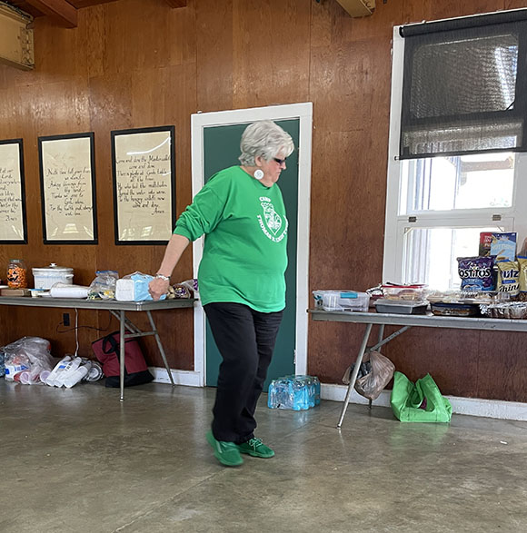 Click Sandy Wooten in her matching green shoes